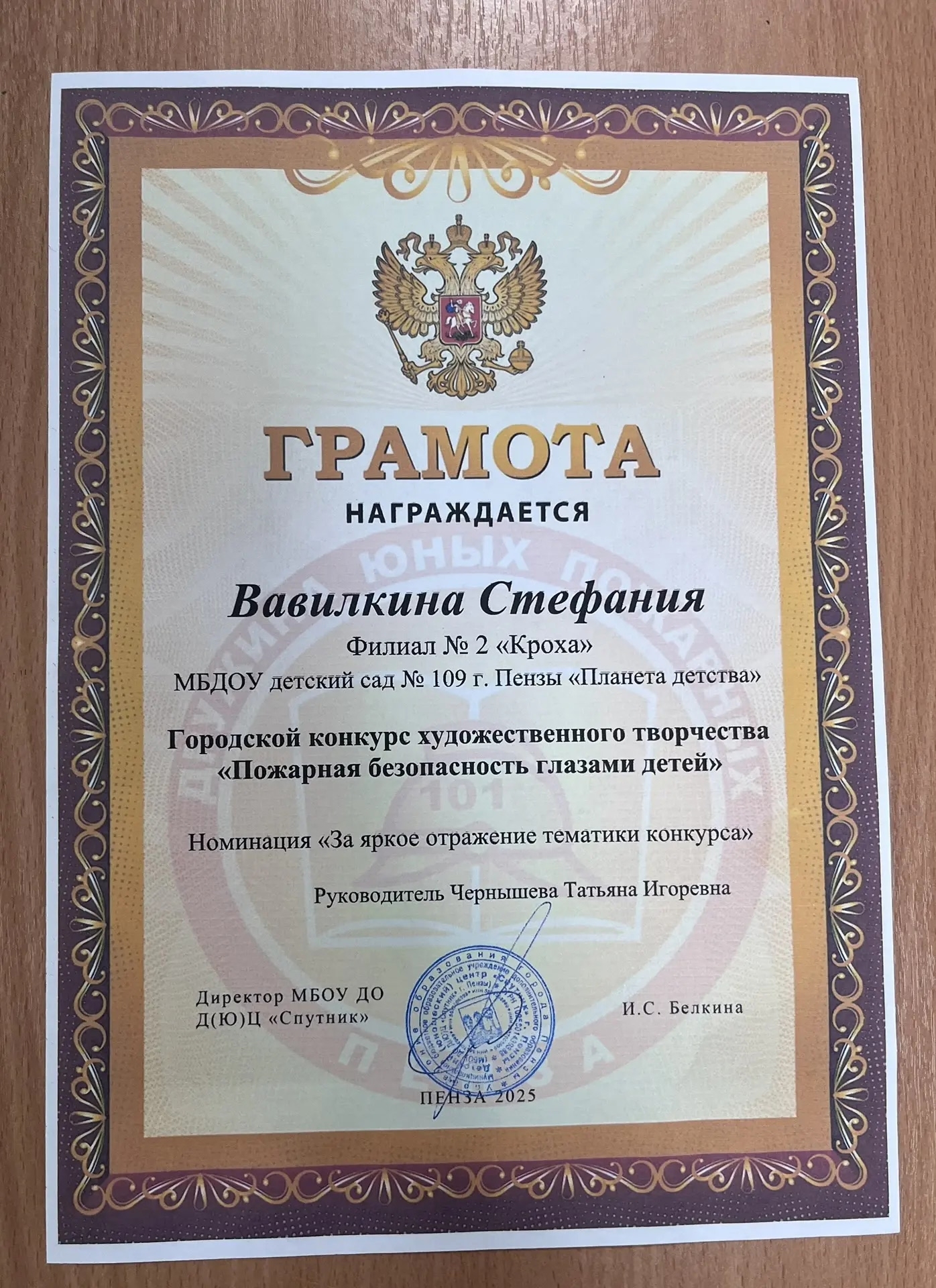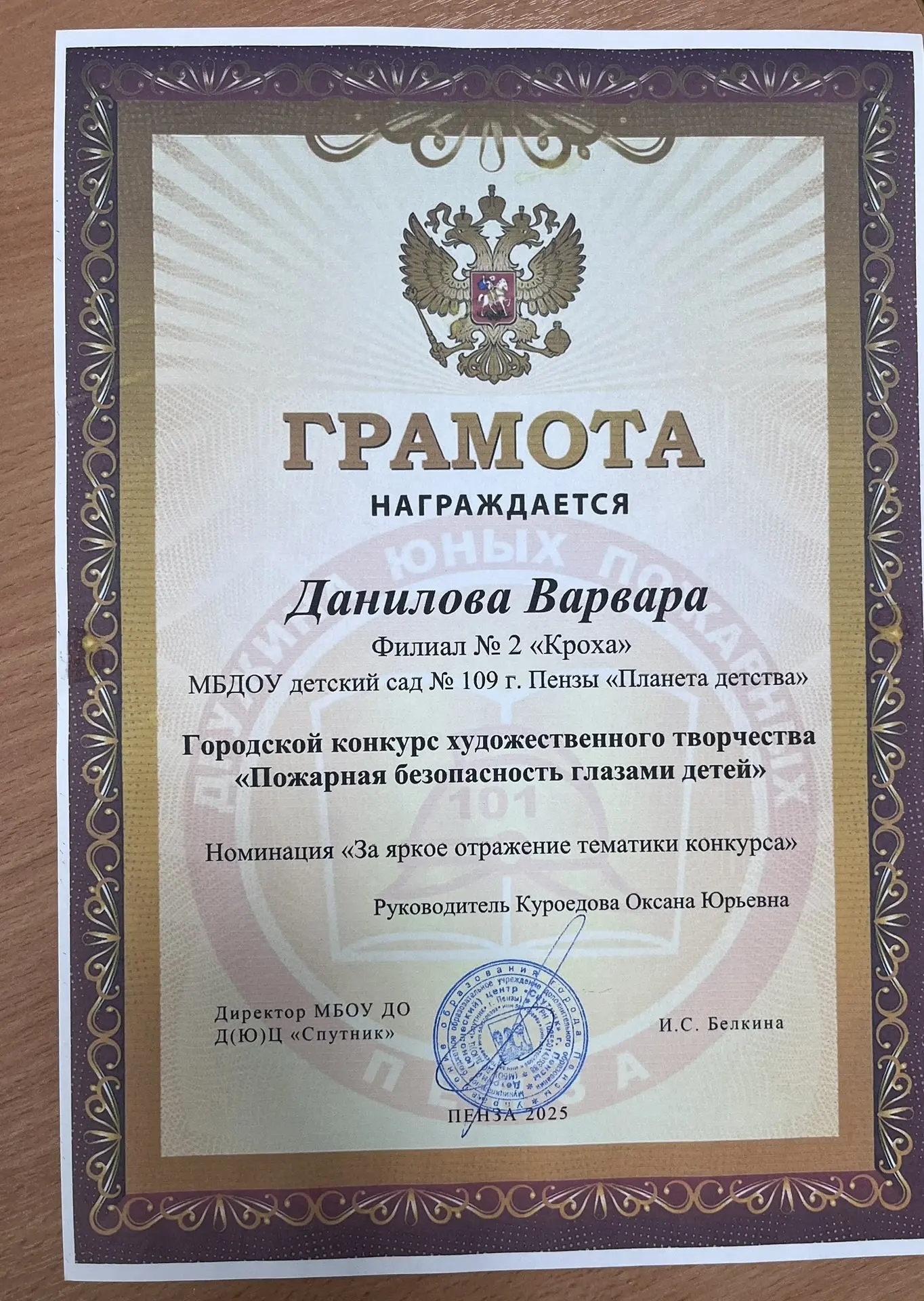 Поздравляем Данилову Варю и Вавилкину Стешу, отмеченных грамотой Городского конкурса конкурса художественного творчества» Пожарная безопасность глазами детей» в номинации «За яркое отражение тематики конкурса».