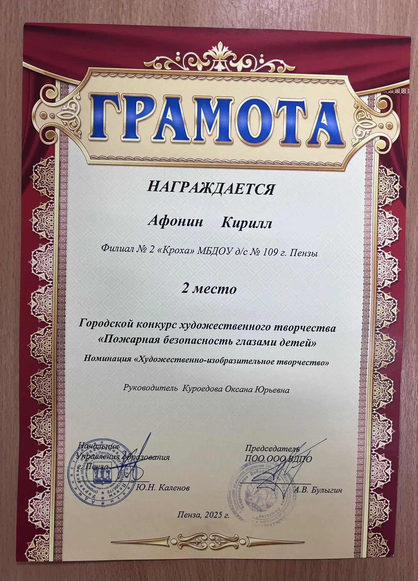 И особо поздравляем Афонина Кирилла, занявшего 2 место в этом конкурсе!!!